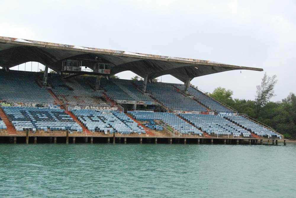Unfortunately, after Hurricane Andrew, the stadium became an abandoned canvas for street art and the like. Now, while under siege by developers for its billion dollars views, conservationists are fighting for its restoration. After being added to the list of America’s 11 Most Endangered Historic Places, the stadium was added to the list of National Treasures in 2012. A grant from the Getty Foundation is providing the means for analyzing how to restore the concrete exterior and American Express provided $80,000 for the analysis of the underwater sea pilings. It has now become only a matter of time before it will see its former glory restored. It is truly the opportunity of a lifetime to be able to attend this year’s show and see the stadium in person, thronged with boat lovers as it was in its heyday.