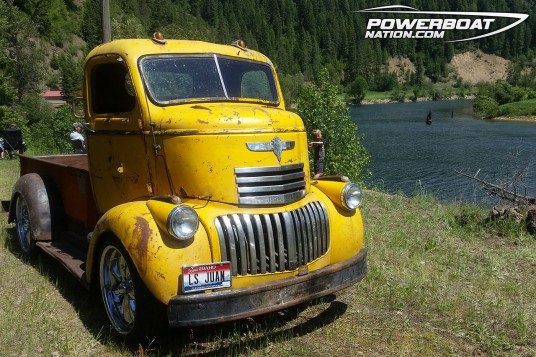 The truck is a 1947 Cheverolet COE sitting on a 1977 Chevy 1/2 truck frame with a LS Vortec engine Pretty cool ride. He drove it down from Sandpoint, Idaho.