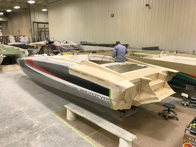 We continue to follow what might be the most elaborate recreation of a Powerboat this year. Dale Rayzor literally had Skater Powerboats take his hugely successful blisteringly fast Sterndrive powered catamaran down to its basic bones and recreate what will surely be yet another trend setting innovation from Skater.