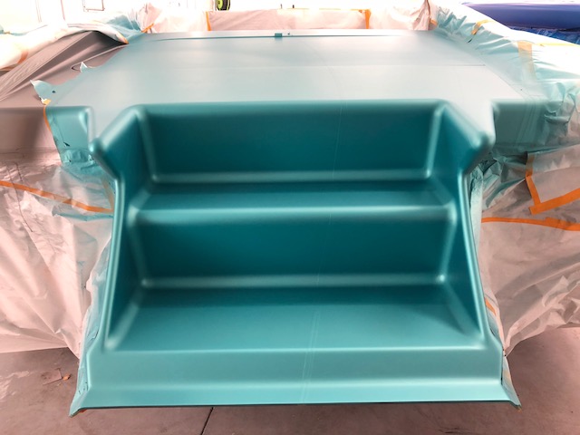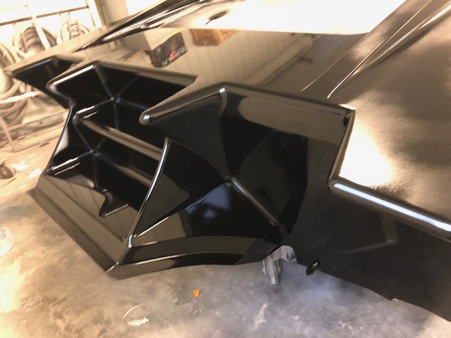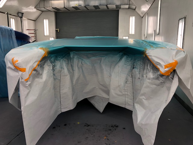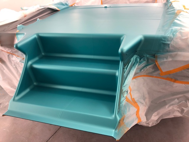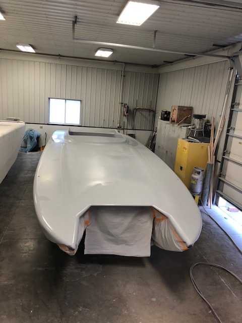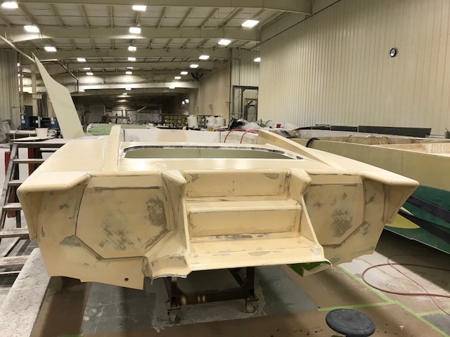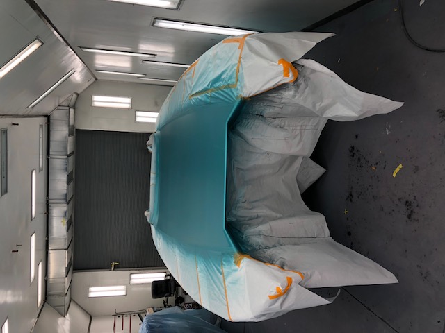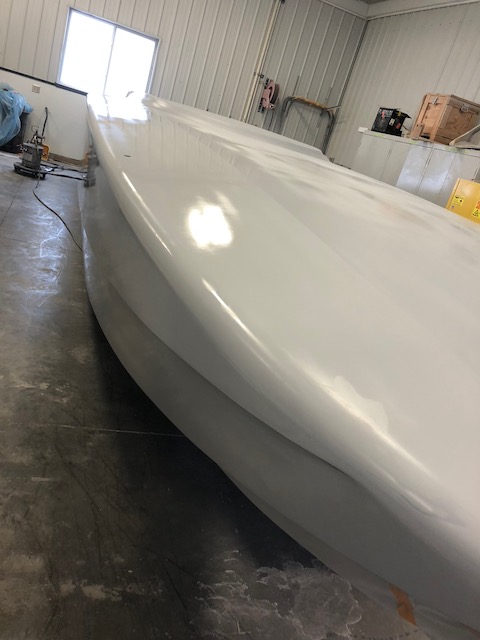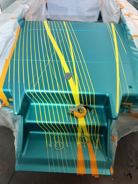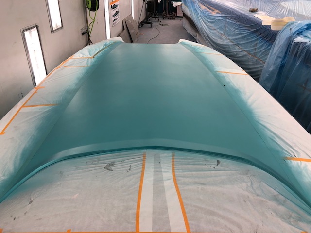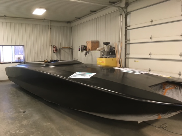 Boat Customs used a P shades program and spent over 150 hours laying down the custom finishes through six masks, ten drop layers equating to shooting over 60 different processes of laying paint on to this boat before applying 4 deep coats of Sikens aerospace clear to the finish before spending an entire week color sanding and polishing. The whole process takes 5 weeks to finish and we’re looking forward to seeing the finished product!