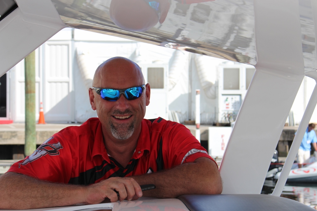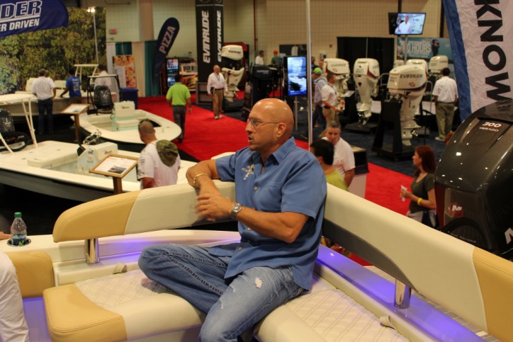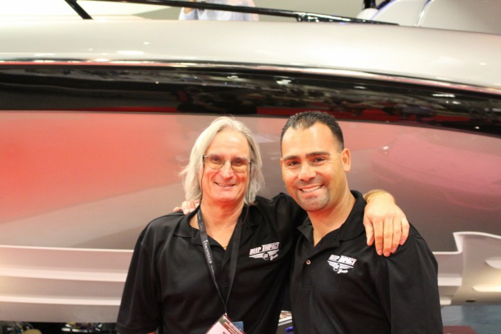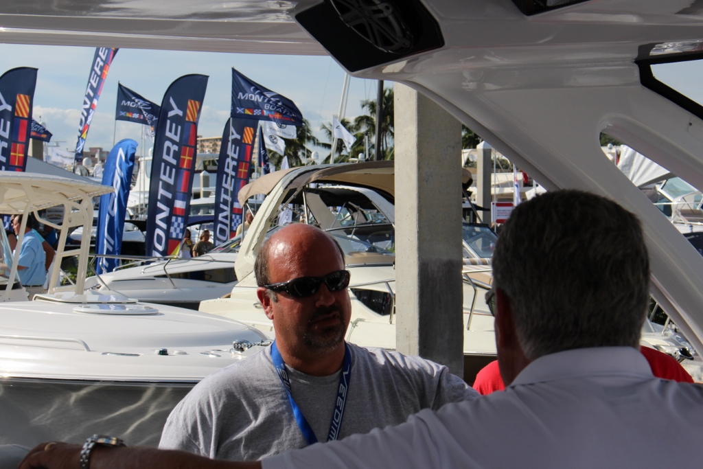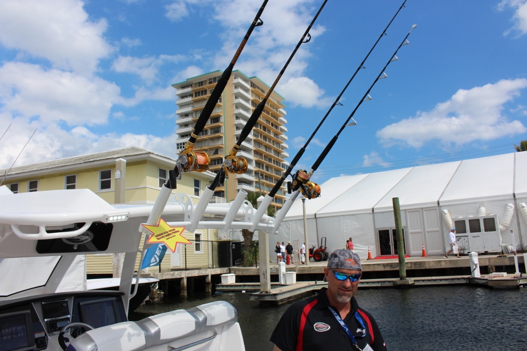 Sunsation was on hand with a fished up boat. The boys from Michigan are so busy building boats. Joe was all alone on the dock because Wayne as at the factory busy building boats. Sunsation’s new 34 is a huge hit and Joe told us the boat at Lauderdale was rigged with fishing in mind, Rod holders, Live well, and a reconfigured transom brought in a huge new crowd. The Florida market has a long established fishing core and this boat was hit with them.