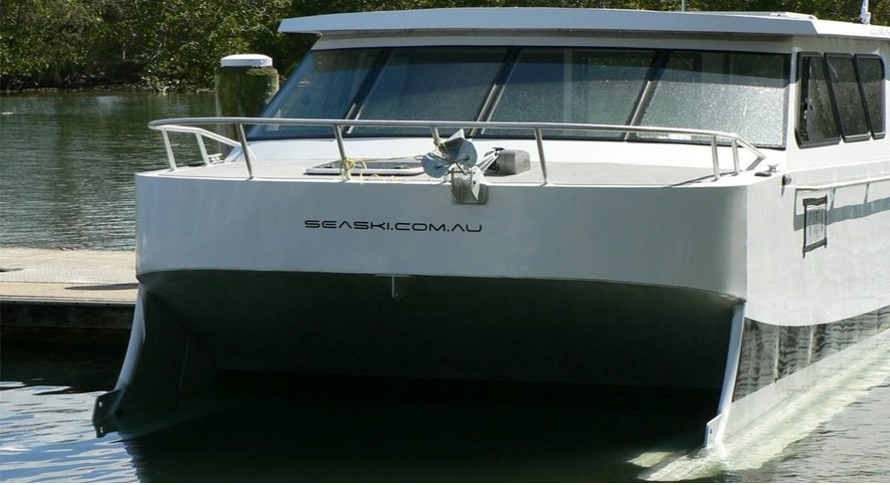 SeaSki’s greatest and most noticeable advantages over other boats are both its speed and absence of wake at cruising speeds both in calm and rough waters. The ability of the skis to lift the boat clear of the water and minimize drag eliminates much of the problems associated with traversing rough water in a v-bottom or catamaran, and this in turn boosts fuel economy and speed. The advantages compliment each other in many ways making for a truly one-of-a-kind craft. Building off of its ability to maintain stability in rough seas is its ability to also be significantly less affected by rough seas while drifting or at slow speeds. While most other boats are severely affected, passengers aboard the SeaSki benefit from its design with decreased chances of sea sickness or injury due to sudden violent seas.