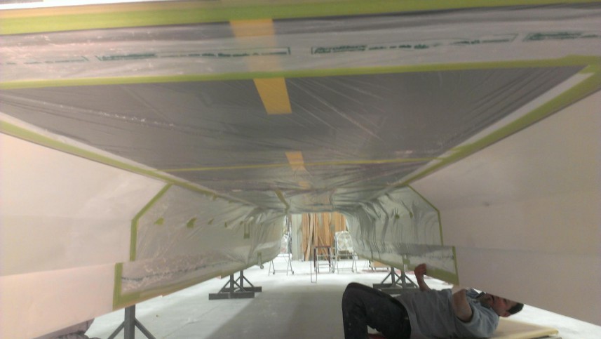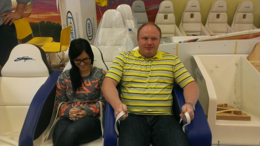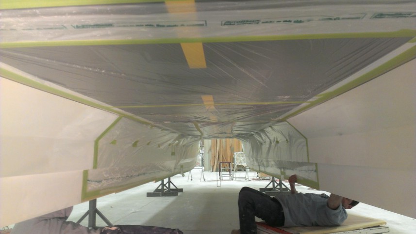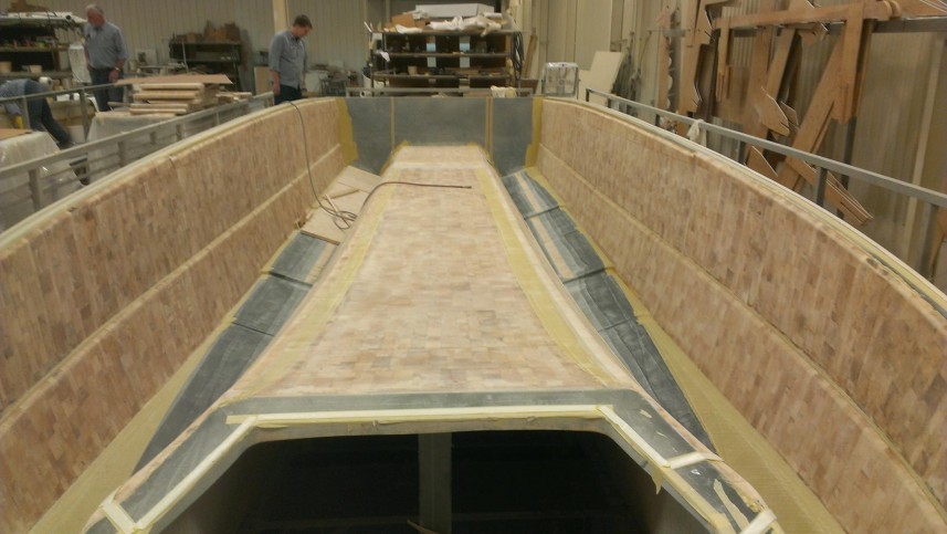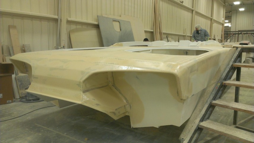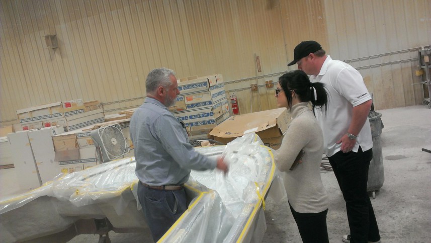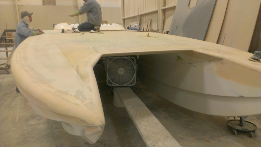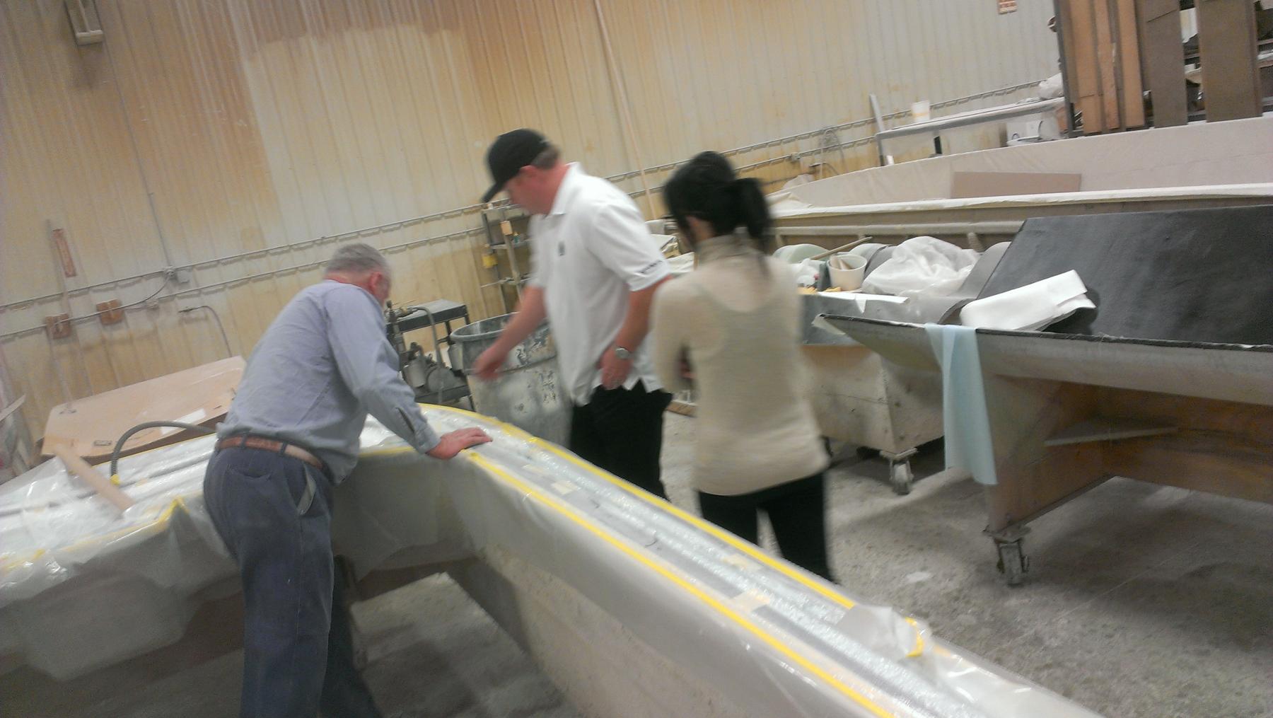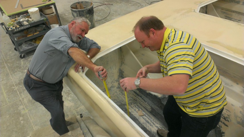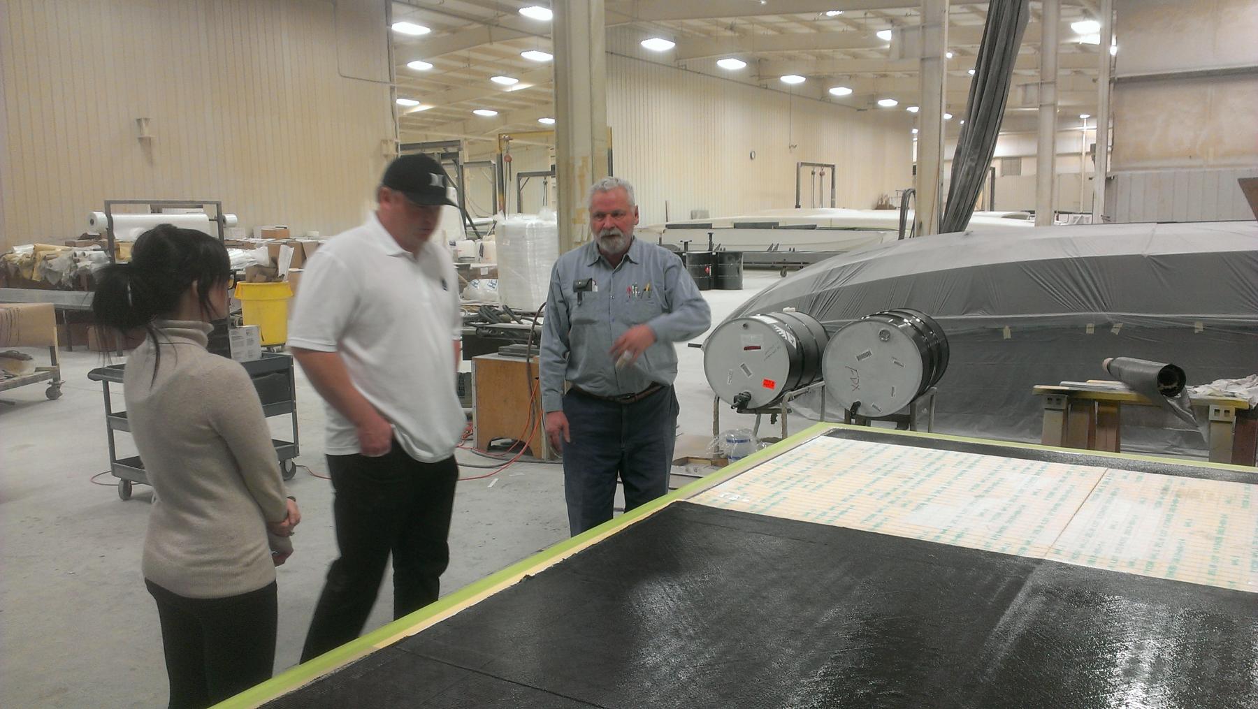 Last week PowerBoat Nation made its third trip in four months back to Skater to ride along with the 388 Platinum build project. This trip included the Rainmaker Crew, Chris and Angela Bradley. Braving miserably cold conditions they met with Peter and some of his crew to go over many of the particular details of the build for what will be the new RAINMAKER which will be hull number 3 for the 388 Platinum builds.