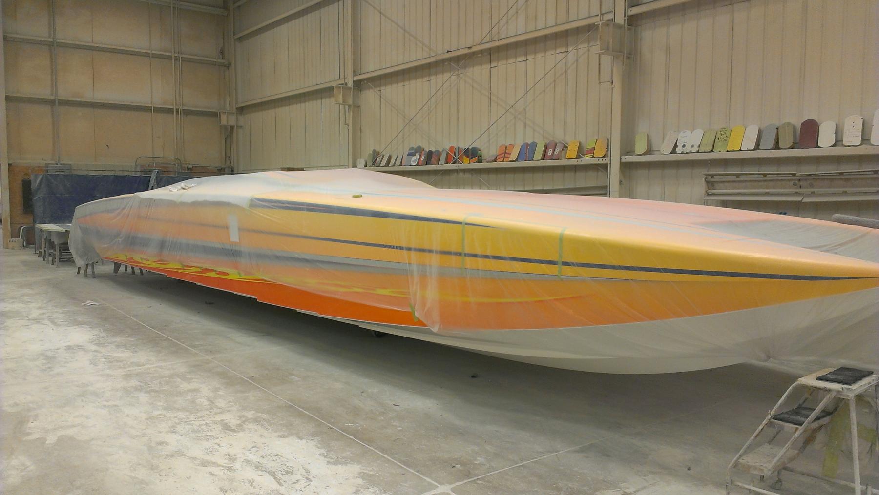 While we were there we got to get a glimpse of the progress on Bill Pyburn’s boat and saw some changes to the paint graphics going on Kelly Sills boat.