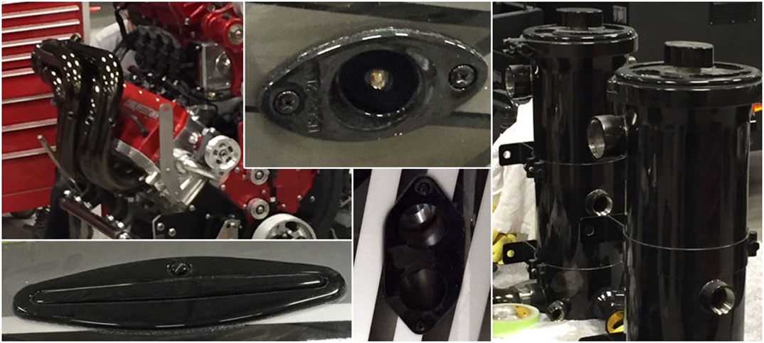 Peter told us he now has the ability to apply a coating in a wide array of colors that represent a finish similar to translucent, and in the case of Pure Platinum black chrome or black Nickel type of finish. The finish has a temperature range far greater than an ordinary painted surface and the durability is like nothing any of us have ever seen to in a non-cooked or powder coated finish.