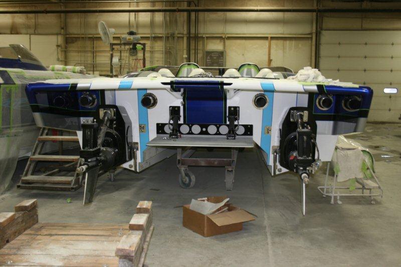 If you are really looking to set the bar, the existing benchmarks are right in front for us all to see. Louie had seen the work that Arneson industries Rik Wimp has turned out and was familiar with the 30′ Skater known as “PROTOTYPE” owned by Dale Razor. This is quite possibly the fastest 30″ catamaran in the country, exceeding 165mph with naturally aspirated power and a bullet proof drive train. Louie wanted a boat that could handle big horsepower and be reliable, this fast cat was only 33 feet but there was no way it could be a bravo based boat with projected speeds in excess of 170 mph. Louie tagged Eddie Young of Young’s performance to design and build the big power, Louie and Eddie had reviewed what the bravo, number Six and Ilmor boat of similar size were running and agreed the only drive option for them was to call Rik at Arneson. So this boat will use Arneson #7M’s with a Zeiger Tie Bar Assembly and the BAM 1350 Transmissions.