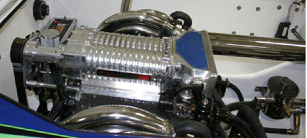 These powerful packages are built up from a Merlin 565CID block with billet main caps, Lunati Blower Series forged crank, Oliver Billet rods, JE piston, Total Seal Gapless rings, Brodix CNC heads, Custom hyd. roller cam with “c” swap firing order, Whipple 4.0 L supercharger w/ MOAC intercooler, MEFI , EFI electronics with a Custom built DIS ignition system with 8 individual coils, Hardin Marine serpentine accessory drive and Hardin Marine Thermofilter.
