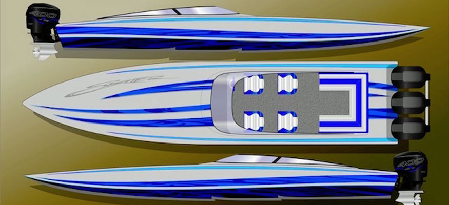 Skater has also designed this boat without a full cabin, which drastically reduces the overall weight of the boat making it extremely light. According to Tony this will allow the boat to easily run past 100mph with ease and even reach speeds of up to 110mph.