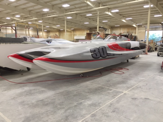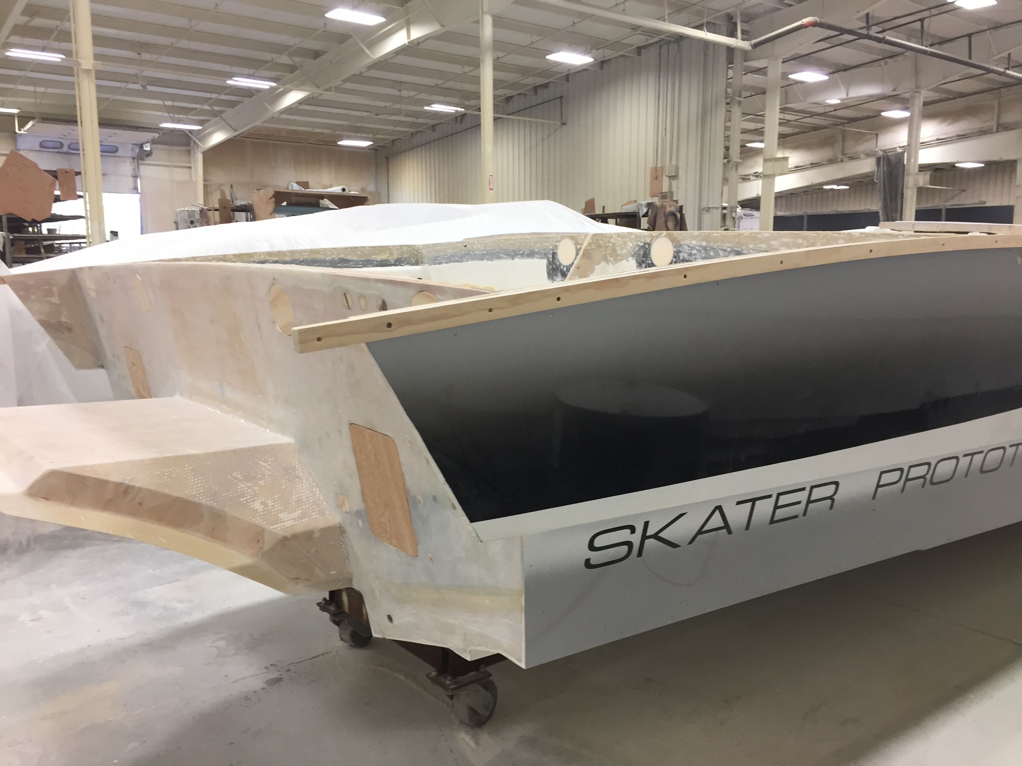 By now some of you should be past the shock and awe of why one of Skaters most legendary 30′ prototype catamaran rockets owned by Dale Razyor of Northern California was making the same swing as our or industry is to high horsepower outboards. This conversion is not for the weak of heart or thin wallet. The “Prototype” Skater is getting no expense spared in the redo. This just isn’t some quick slap it together project this boat was literally dismantled down to its bones. Part 2 gives you an inside look at the depth of the process Skater has invested to showcase some of its latest features.