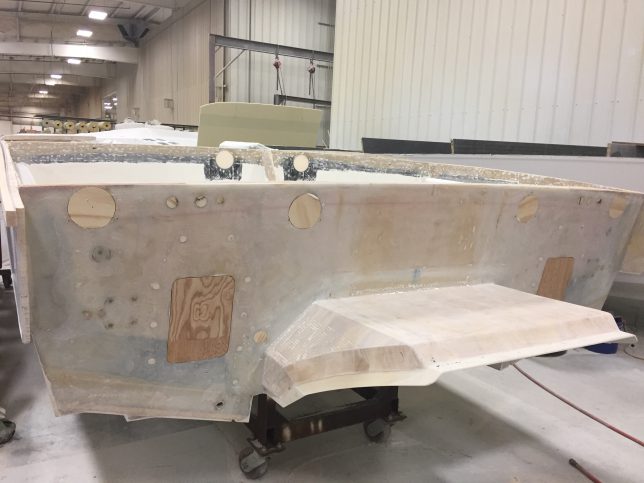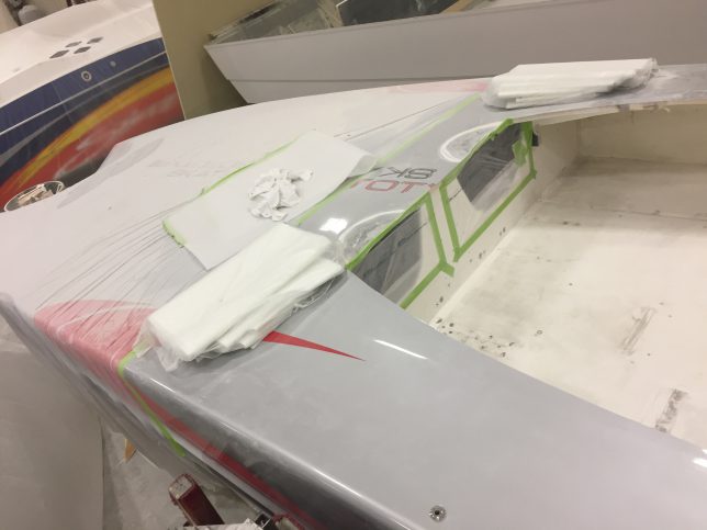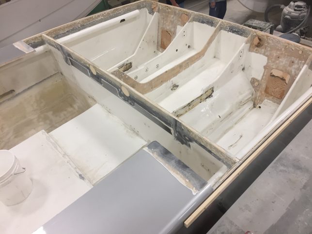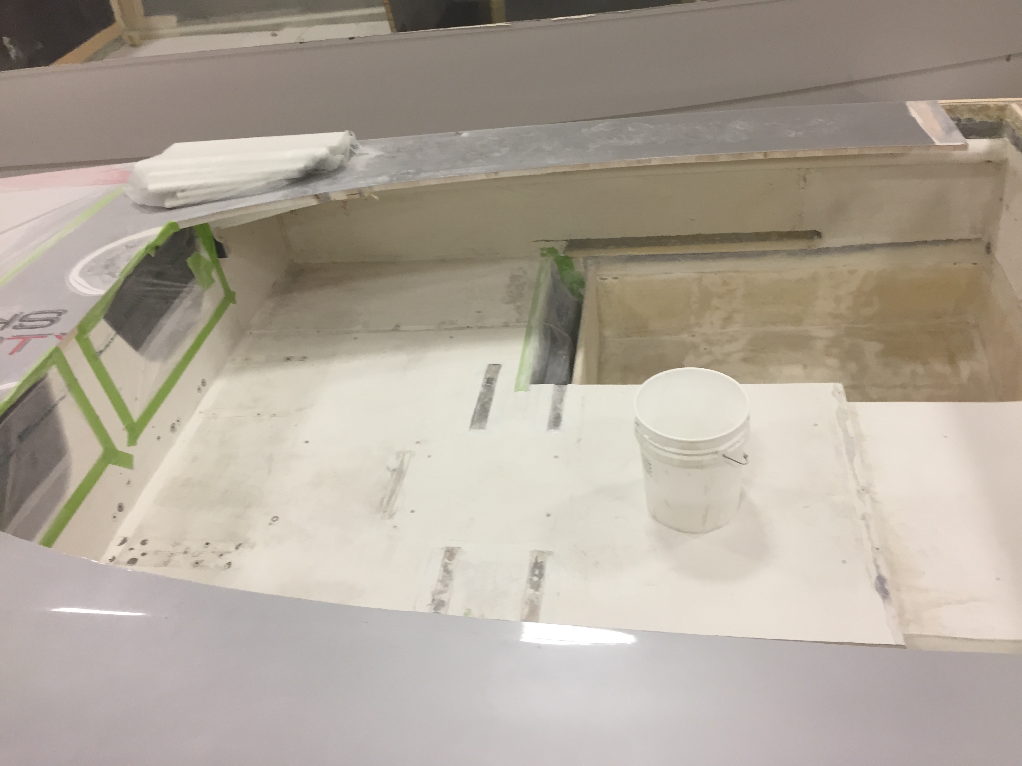The expert team at Douglas Marine drops the deckline a whole 3″ making way to the biggest upgrade the removal of the earlier first generation hazy windshield to make way for what today nearly every high performance boat builder demands is a Lee Aerospace wrap around windshield, These windshields are optically superior to anything weve seen in the marine industry and are built for the demands of aircraft and offer a fit and finish like no other. In addition to the windshield change the old double hatch’s are removed to make room for a single unit, Stay tuned as we follow the journey of this amazing boat.
