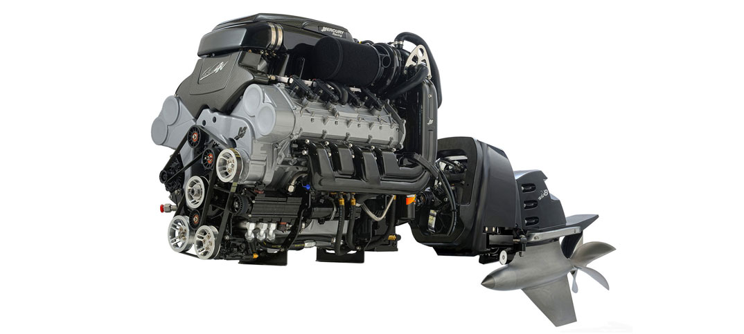 Back in December, Powerboat Nation broke the news that Mercury was set to unleash a 1700 HP Turbo motor after some curious performances led many to believe some boats were not just running 1350’s. Looks like we were right but off by 50 HP. Mercury unveiled their new motor today at Miami which will run on 112-Octane race fuel. This beast includes much larger turbochargers, many computer changes and re-calibrations and an upgraded oiling system. Mercury will be pairing these engines together with upgraded and stronger M8 drives. There no word yet on the cost of these monsters, but one can only imagine. Don’t get to excited yet about getting one for your boat, as currently production 1650’s will only be available to qualified racing teams, with Miss Geico taking the first ones.