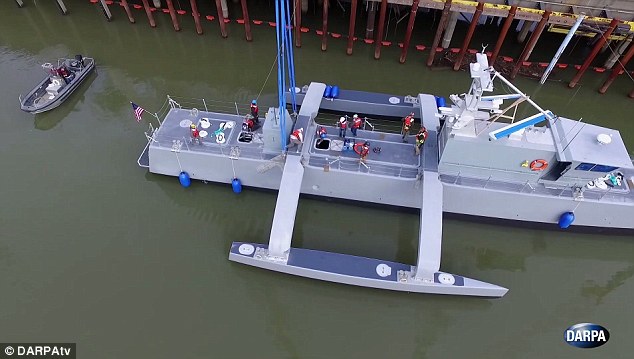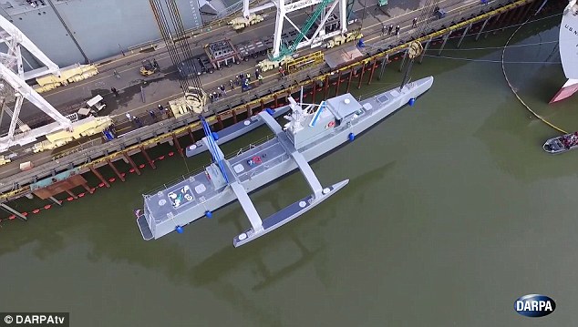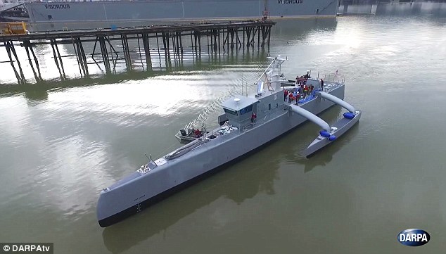 Darpa director Dr. Arati Prabhakar and deputy director Dr. Steve Walker revealed the craft earlier this year. “Imagine an unmanned surface vessel following all the laws of the sea on its own,’ Walker told media, ‘and operating with manned surface and unmanned underwater vehicles. The robot boats will go to sea for us to three months at a time.”