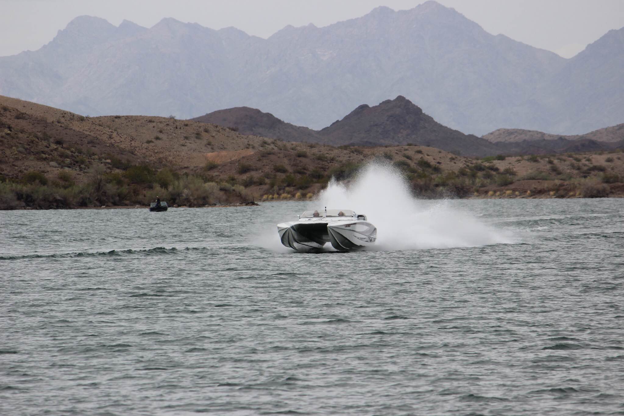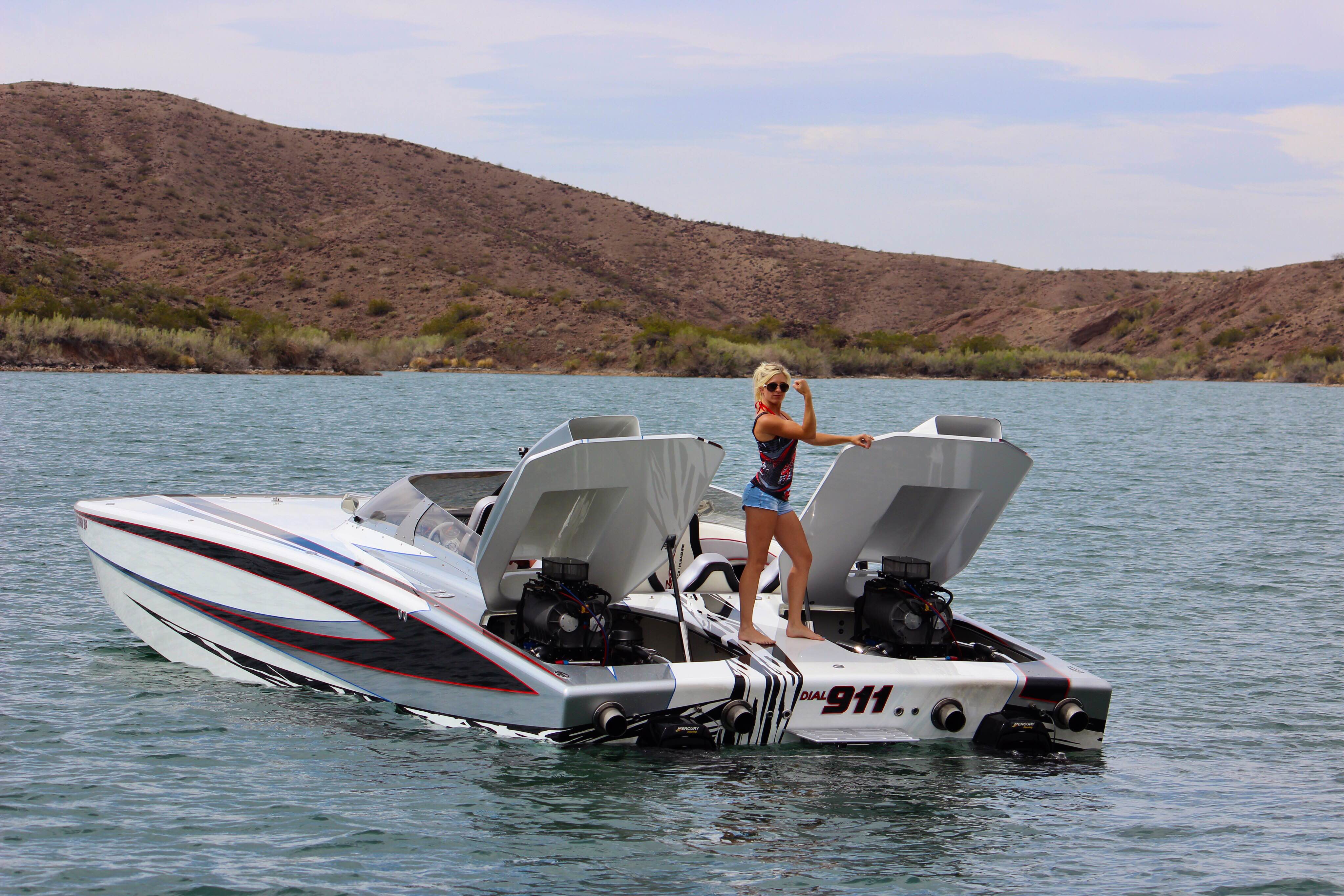 Planning on releasing their new top-of-the-line website and performance boating product line and apparel at Desert Storm in Lake Havasu City, the Richardsons knew they had to do something out of this world to bring it home. Summer a.k.a. Mrs. Swoop decided to approach her parents Don and Connie London (owner of the Dial 911 Skater) about running the 3600 HP Skater in this years shootouts.