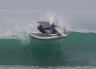 Watch Surfers Get Tossed Off Their Boat as Massive Wave Sneaks Up Behind Them!