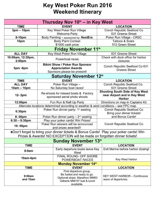 We’re a week away from the start of the famed Key West Poker Run and we can’t possibly be more anxious to jump in the boat an head out already! This week, the Florida Powerboat Club released the official Key West Poker Run Itinerary for all of you that are going to be in attendance this year, and it looks like it’s going to be another home run event!