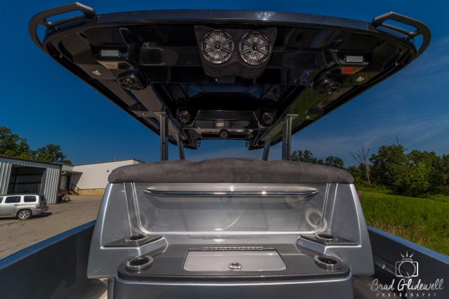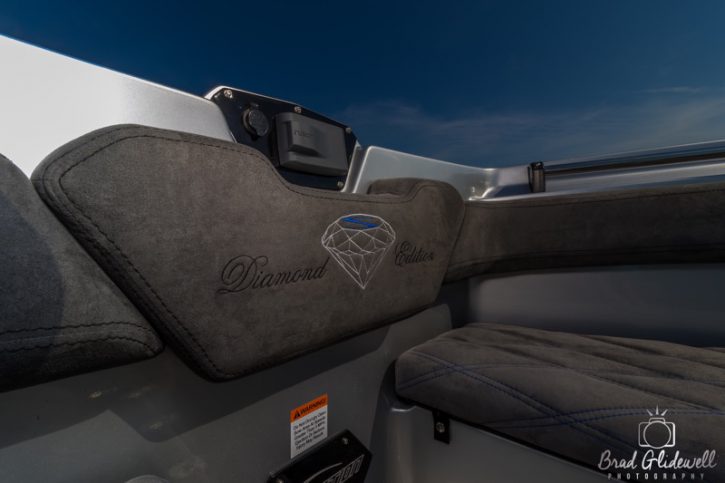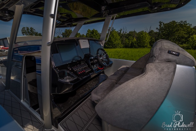 This changed when Jared forced a new build with some incredibly special features. This new 34 CCX “Diamond Edition” features some very custom interior features done by Waves and Wheels. The full Alcantara XO material with incredibly detailed stitching and design has set a new standard for these CCX interiors. In addition to the upholstery, Waves and Wheels installed one of their remarkable stereo systems as well as Sea Deck Flooring. The ultra unique custom paint was handled by Clayton at Custom Colors.