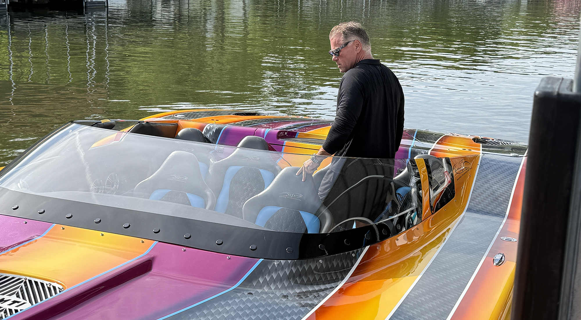 Even if his 2010 model-year 48-foot MTI catamaran with Mercury racing 1350 were in his toy barn rather than presently on the boat-lift behind his sleek 5,000-square-foot home, there still would plenty of space left for another boat or three.