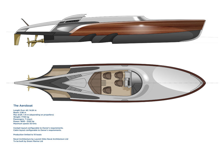 THe 48-foot Aeroboat, designed by Claydon Reeves and Laurent Giles, and built by Green Marine is modeled after the high performance British WWII Fighter, the Spitfire.