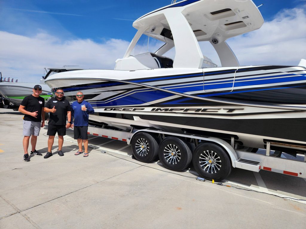 Firing on all product-development and proper marketing cylinders these days thanks to the brand-immersion of company owner Mark Fischer, Deep Impact Custom Boats of South Florida entered Super Cat Fest West partnered—so to speak—with Phoenix-based DCB Performance Marine. Deep Impact displayed a brand-new 399 center console at DCB headquarters last week, and the 39-footer will remain there through the upcoming Desert Storm event. The company also showcased a 369 model during Super Cat Fest West, and company team-members to Mauricio Urbina and John Wittenberger were there answer questions and offer demo rides.
