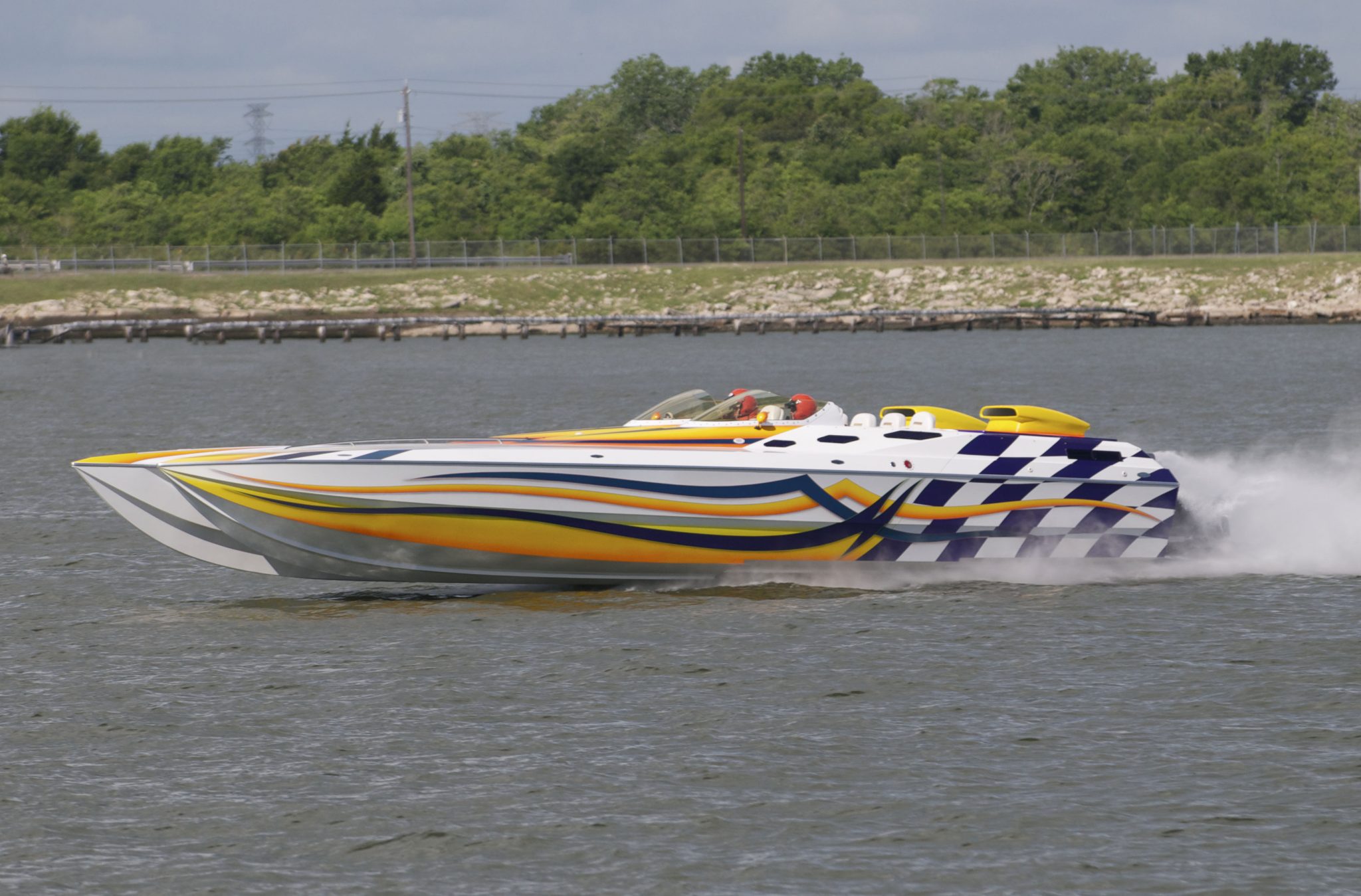 Originally owned by Gary Smith, Predator was purchased by Gilbert about a decade ago. It’s famous for having taken the Shootout trophies at both the Lake of the Ozarks and the Texas Outlaw Challenge. The Skater is powered by twin Carson Brummett engines putting out 2,300 hp, and is capable of exceeding 200 mph, according to Gilbert. “Gary Smith took it out and got it up to 202 the other day,” he told Powerboat Nation.