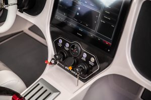 Typical power on the 27′ VTX and Pro Cat hulls will be twin Mercury Racing 300R outboards.