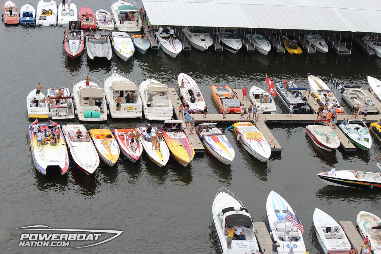 The Lake of the Ozarks Poker Run was just one of the events taking place within the LOTO Powerboating Event. With a total of eight card stops and extended lunch stops all over the lake all the participants were able to spend the entire day exploring Lake of the Ozarks. PowerBoatNation was privileged to be able to fly along in the back of John Woodruffs Bell Long Ranger Helicopter and shoot some video of the run.
