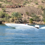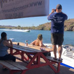 The tradition began two years ago, when Wozencraft’s good friend, helicopter pilot Fred Young, suggested that they invite several of his good customers to spend the day for a lunch, a photo shoot and some boating fun at the Fox’s floating dock bar in Parker, AZ. It was a very low-scale, non-advertised event. Among those attending were Greg and Heidi Pursley in their Schiada. “We ended up having a real blast,” he recalls. “We made a video of it, which is on our website.”