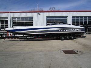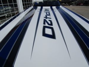 According to PBC co-owner Brett Manire, the new Wright Performance 420 is receiving some finishing touches prior to Miami’s opening on Feb. 14. “We were honored to be asked to have a boat in the Mercury Racing test booth, so I want to make sure that we debuted a spectacular piece,” Manire told Powerboat Nation. “This 420 is just an amazing machine. I think we’ve hit it out of the park.”